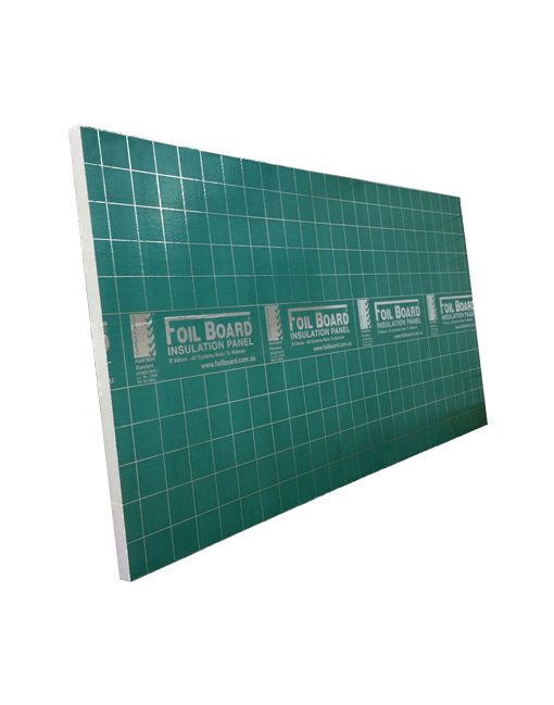 Foilboard Green Rigid Insulation Panels are designed for use in walls, floors and roofs. They are manufactured in Australia from a fire retardant expanded polystyrene core (FR-EPS) with pure aluminium foil directly laminated to both sides, creating a superior insulation, thermal break and non-permeable moisture barrier. Foilboard Insulation has been engineered and designed to ensure a quick and easy installation of a non-itchy, fibre free rigid insulation panel that will provide continuous thermal performance for the life of the building. It is suitable for residential, commercial and industrial applications.