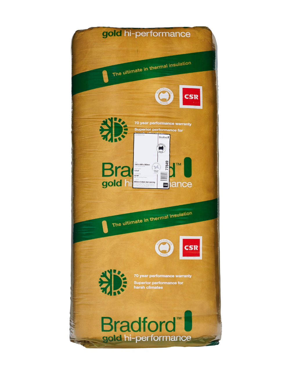 Bradford Gold Hi-Performance insulation batts are specifically designed to deliver optimal performance in ceilings. Climate is a major factor to determine the R-Value best suited to your home. When we speak about the “R-Value”, this basically is referring to how well the insulation will restrict the transfer of heat and cold from inside to outside. CSR Bradford’s Hi-Performance ceiling batts are sold in R-Values of R5.0 to R7.0, which is the highest level of protection available anywhere in this country.